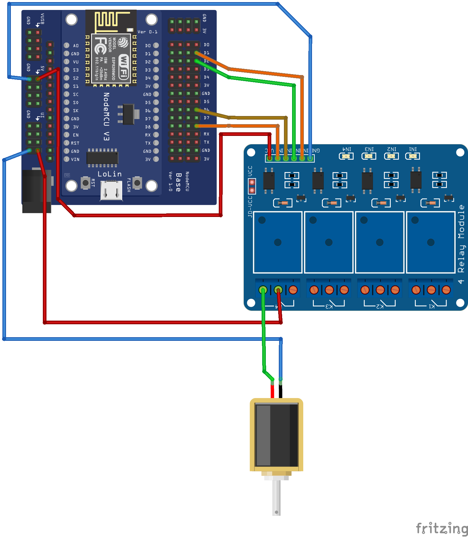 โดยใช้ไฟเลี้ยงวงจรผ่าน NodeMCU Base