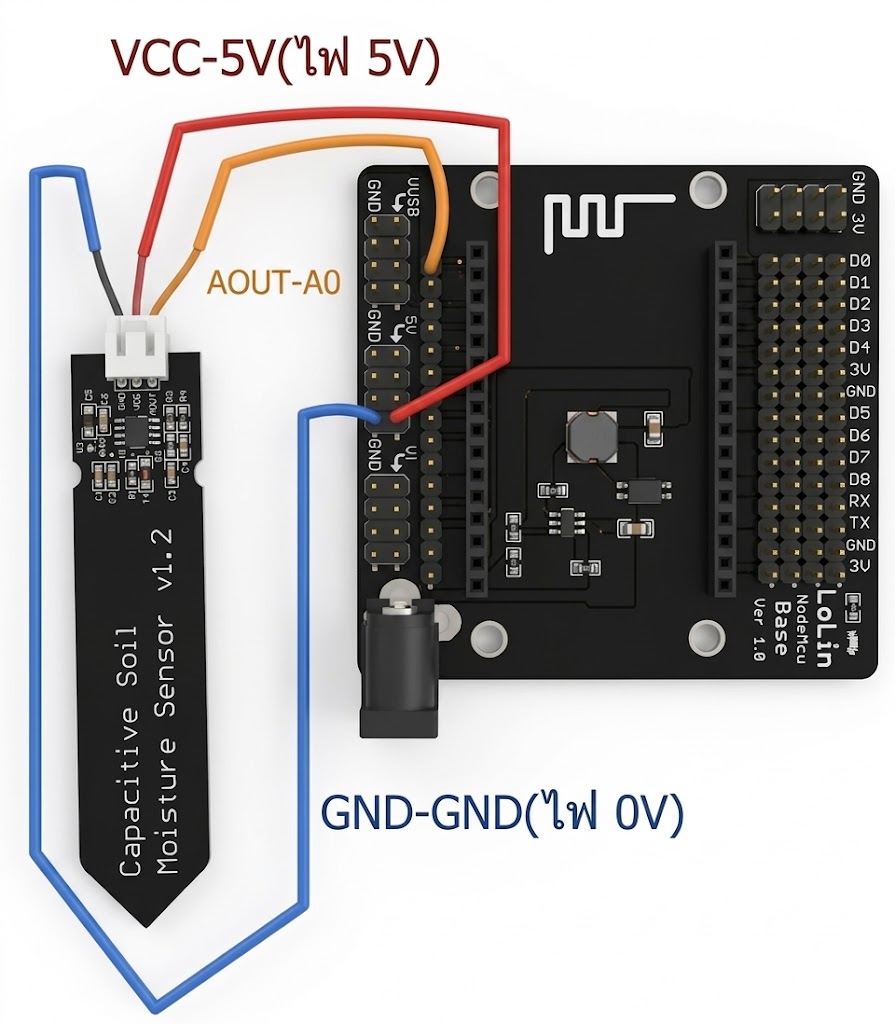 การต่อระบบเซ็นเซอร์ความชื้นในดิน